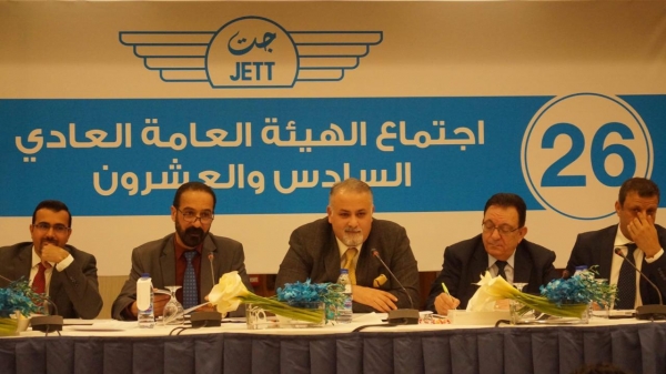 عقدت الهيئة العامة للشركة الاردنية للنقليات السياحية (جــت) اجتماعها السنوي السادس والعشرون ظهر الاربعاء 24/4/2019 برئاسة الاستاذ كمال البكري رئيس مجلس الادارة ومندوب مراقب عام الشركات غسان ضمره والسيد مالك حداد الرئيس التنفيذي للشركة .
