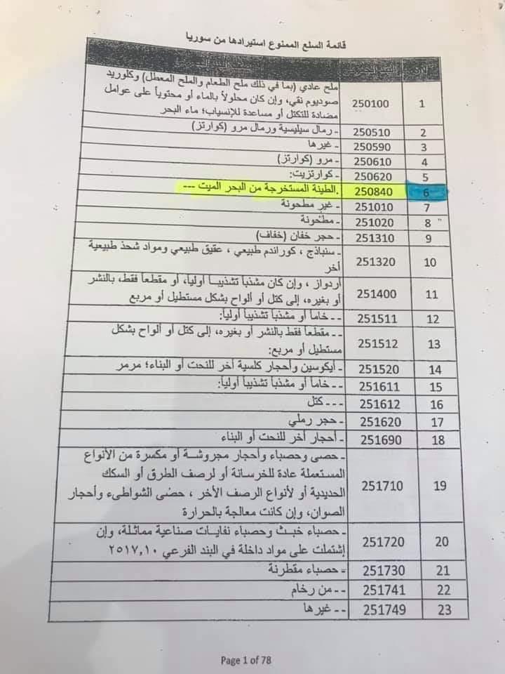 ونشر خوري جزء من قائمة السلع التي منعت الحكومة استيرادها من سوريا، ومن ضمنها (طينة البحر الميت).