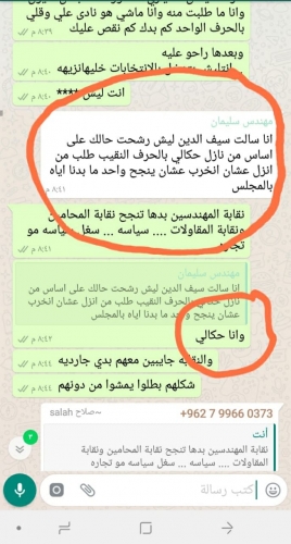 الأصوات التي كان من المقرر أن يصوت صاحبها للقدومي، ليتفاجأ أنها ذهبت لصالح نقيب المقاولين.