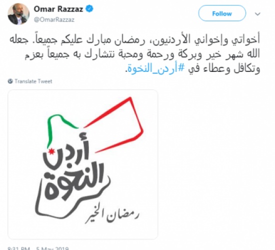 وقال الرزاز عبر تغريدة على موقع تويتر :