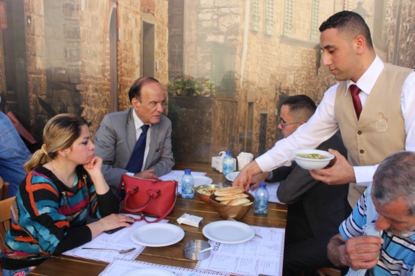 وشكر رئيس فرسان السلام الدكتور أمين أبوحجلة السيد رائد حمادة رئيس مجلس إدارة مجموعة مطاعم حمادة صاحب الايادي البيضاء لحسه الوطني وما يبذله من جهود دائمة و بناءة في خدمة المجتمع وأبناءه تعزيزاً للترابط المجتمعي والروح الواحدة للعطاء ولتخفيف العبء .كما أشاد الدكتور أمين بجهود وزارة الاوقاف ومديرية الشؤون النسائية لعملها الدؤوب في خدمة المجتمع والتكافل الاجتماعي ومسؤولية العطاء الخيري البناء التي تتشارك الاهداف الواحدة للايتام وخدمتهم وتخفيف عنهم بعض همومهم، و رسم الابتسامة على وجوههم .
