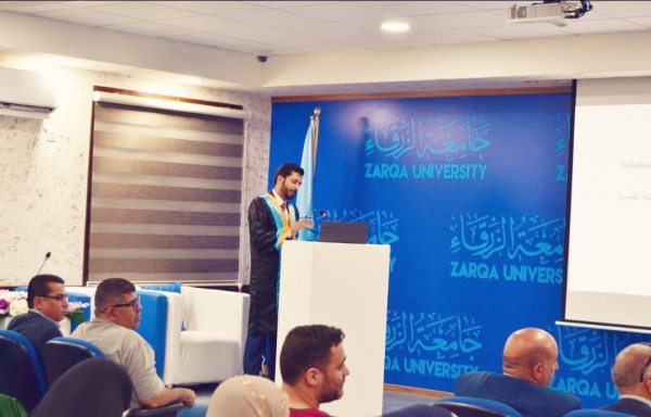 الطالب حمزة الشديفات، كان متمكنا ومبدعا خلال جلسة المناقشة، حيث حاور هيئة الأساتذة بكل اقتدار، وسط تواجد عدد كبير من الأهل والاصدقاء والطلبة والاساتذة.