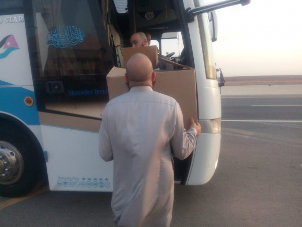 حيث قام العاملون في إدارة الدوريات الخارجية /فرع دوريات الأزرق _محطة شويعر الامنية بإيقاف حافلة معتمرين اردنيين قبل اذان المغرب بقليل والترحيب بهم وتهنئتهم بالسلامه ومن ثم تقديم وجبات الافطار لهم