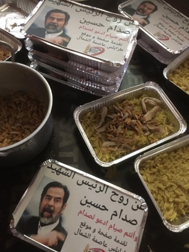ونشرت صفحة تحمل اسم "طرابلس عاصمة الشمال" صورا لوجبات إفطار يتم توزيعها على الصائمين وكتب عليها: "عن روح الرئيس الشهيد صدام حسين وأنتم صيام ادعوا لصدام. تقدمه صفحة وموقع طرابلس عاصمة الشمال".