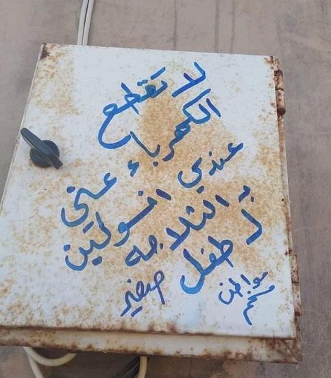 وكتب صاحب المنزل على صندوق عداد الكهرباء :" لا تقطع الكهرباء عني .. عندي أنسولين بالثلاجة لطفل صغير .. مواطن مسخم".