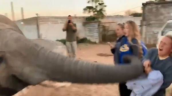تفاجأ سياح أمريكيون من ردة فعل فيل، في إحدى المناطق السياحية في زامبيا، حين حاولت إحداهن التقاط صورة له.