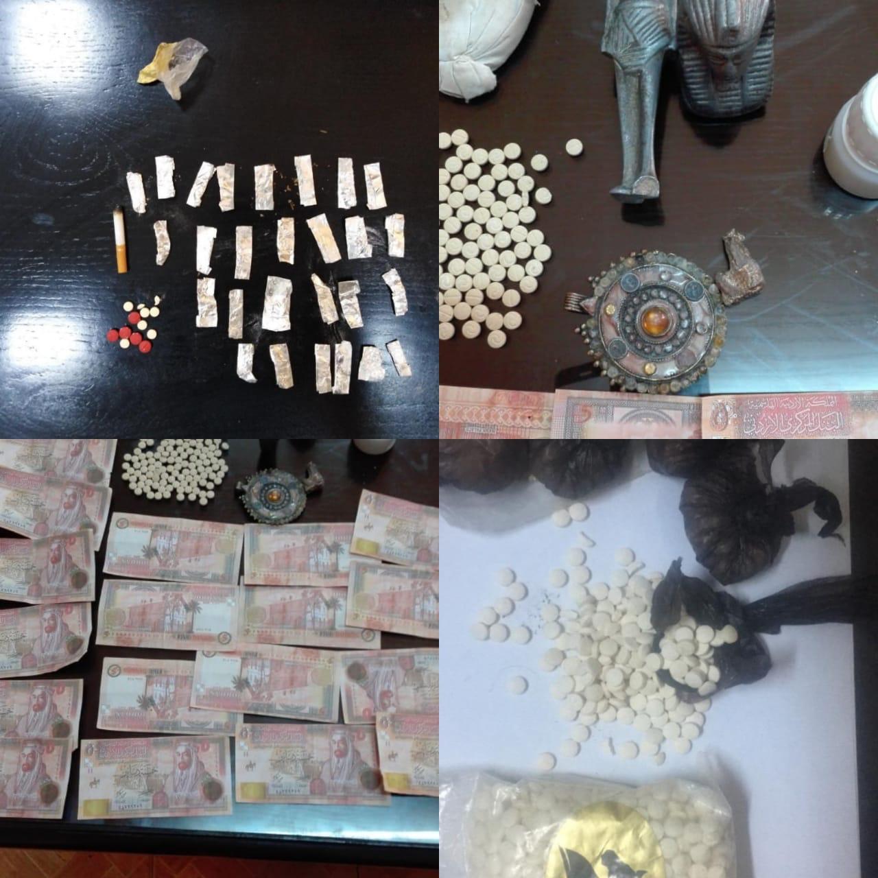 وفي محافظة المفرق تم التعامل مع ثلاث قضايا منفصلة القي القبض خلالها على ثلاثة اشخاص من مروجي المواد المخدرة حيث ضبط بحوزة احدهم ٢٠٠٠حبة مخدرة ، فيما ضبط بحوزة الثاني على ١٣٠ حبة مخدرة و٢١ ورقة نقدية مزيفة ، اما الثالث والذي ابدى مقاومة للقوة وحاول الفرار فقد ضبط بحوزته ١٠٠ حبة مخدرة وكمية من مادة الحشيش المخدرة .