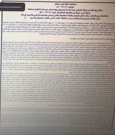 وانذرت المحكمة الشركة بدفع مبلغ 670 الف دينار للدائن وذلك بعد اعلان بيع عقار.