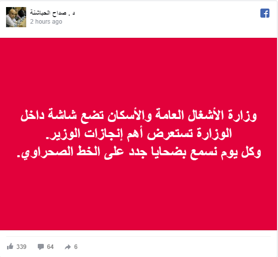 وكتب الحباشنة عبر صفحته على موقع التواصل الاجتماعي "فیسبوك": " وزارة الأشغال العامة