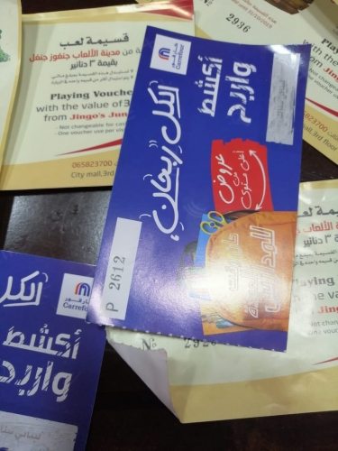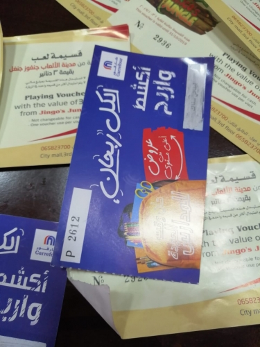 كارفور يسوق الوهم ويزرع الهواء قطناً والماء خبزاً ويرفع من ماكنة الترويج والتسويق لكسب الزبائن واجبارهم لدخول فروعه من باب الهدايا والجوائز ونثر السراب وهماً من خلال انه يقوم بتحويل النقاط في فاتورة الزبون الى جوائز وحوافز ونقود تُحول بكبسة ساحر ولمسة جني الى وجبات وعصائر وهدايا مضحكة ما انزل الله بها من سلطان ... فإدارة المول التي تحفز المشتري على تضخيم فاتورته بحجة ان الفاتورة الدسمة توفر لك نقاط تترجم على شكل بطاقات اكشط واربح بمعادلة حسابية ربما "اينشتاين" يعجز عن فك طلاسيمها وارقامها لان الحصول على النقاط يحتاج الى معادلة حسابية وايادي ذهبية وآلة حاسبة وانتظار يملؤه صاحبه بالاستغفار وهو ينتظر من يمن عليه بورقة او قصاصة مروسة بـ"اكشط واربح" وهنا تبدأ مرحلة الكشط ومشوارها فبعد ان تمحو الخانة المخصصة للكشط تنهال وتتفجر الهدايا والتي تكتشف حين الذهاب لصرفها وتحويلها ما هي الا فقاعة رغوة او مجرد نقطة ماء في بحر الوعود الكاذبة وحتى الجوائز المخصصة غالباً ما يتم التحايل عليها وتفريغها من مضمونها وتحويلها الى مجرد وعد يمكن التلاعب بمفرداته والفاظه فمثلاً الهدية القرطاسية ما هي الا قناع لاخافة الاطفال وافزعهم وربما تفيد الاهالي لمن يسعى لانامة اولاده مبكراً بالاضافة الى شبر مقصقص وستيكرات "زبالة" ليس هذا فحسب فلو قدر لك ان تربح وجبة برغر من ماكدونالدز فان الفرع لن يصرف لك الا وجبة بعينها دون غيرها وكأن المطعم يريد ان يطعمك على "كيفه" وليس كما هو مكتوب في الجائزة المقلب وحينها تضطر لشراء وجبة اخرى لتعويض الوجبة الفيلم ليس هذا فحسب فمثلاً من يربح وجبة لبناني سناك فهو لا يربح الا الاسم والصيت لان "الحكي مش مثل الشوف" حيث يتوجه صاحب الجائزة رافعاً رأسه امام اطفاله لاستبدال الجائزة بوجبة فيكون الرد هنا مكان غير مخصص لصرف الوجبات لانها غير شاملة او ضمن الجائزة فالجائزة فقط كاسة كوكتيل اسخن من حر آب اللهاب وحتى جوائز اللعب التي تربحها بقيمة ثلاثة دنانير فلا يحق لك الا ان تلعب بها مرة واحدة حتى لو كنت تملك عشر قسائم .