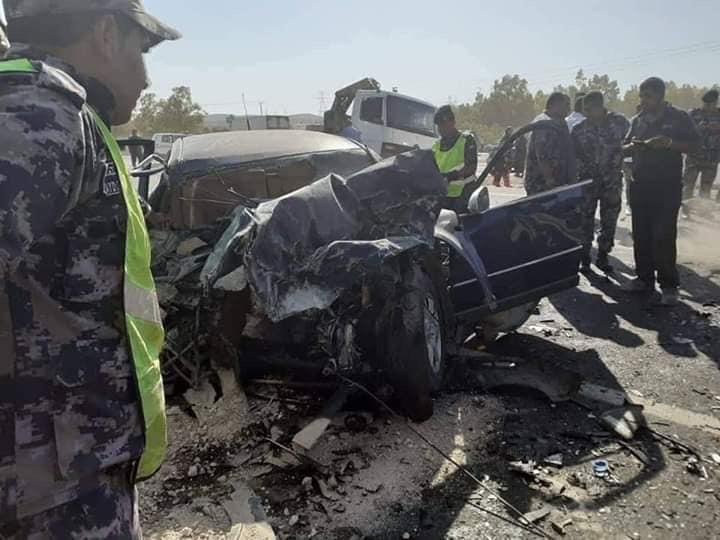 وصرحت إدارة الإعلام في الدفاع المدني بان كوادر الإنقاذ والإسعاف في مديرية دفاع مدني الكرك تعاملت اليوم مع حادث تصادم وقع ما بين مركبتين على الطريق الصحراوي في منطقة القطرانة , نتج عنه وفاة خمسة أشخاص وإصابة ثلاث آخرين بجروح ورضوض مختلفة بالجسم.