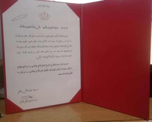 عندما حصلت على وسام الحسين للعطاء المميز من الدرجة الأولى وهو أعلى وسام ومنحته لانجازاتي الصحفية وسيدي صاحب الجلالة الملك عبد الله الثاني بن الحسين قلدني اياه يوم ٢٥ - ٥ - ٢٠١١ يوم عيد الاستقلال وهذا كان هو التكريم الأهم لدي وقلت لسيدي صاحب الجلالة وهو يقلدني يا سيدي شكراً لك لأنك انصفتني قلت له هذا اليوم وهذه اللحظة انا اُنصفت وانت أَنصفتني ولا اطمح بشيء آخر.