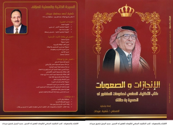 والرابع ( كتب التكليف السامي لحكومات المغفور له الحسين بن طلال رحمه الله) وشمل هذا الكتاب جميع كتب التكليف للحكومات الأردنية منذ عام ١٩٥٣ حتى عام ١٩٩٩ واعتمد هذا الكتاب تحليل مضمون والإنجازات التي تحققت في عهد هذه الحكومات والصعوبات التي اعترضت هذه المسيرة.