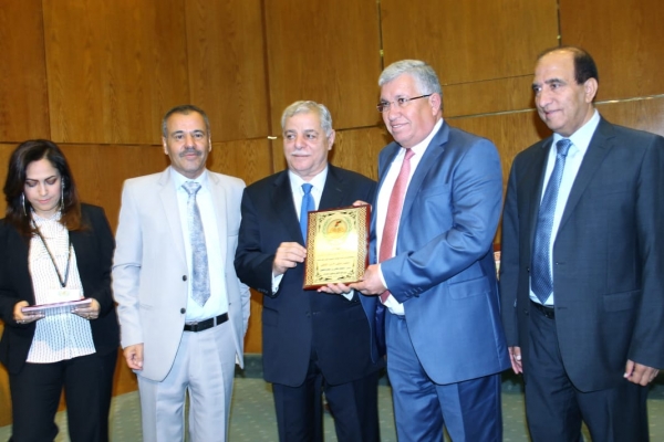 وكرم راعي المؤتمر دولة عون الخصاونة مدير عام شركة الضامنون العرب هيثم ختاتنة بدرع تذكاري .