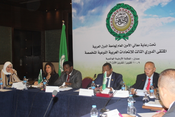 مندوباً عن الأمين العام لجامعة الدول العربية احمد ابو الغيط ، رعى السفير كمال الدين حسن علي ( رئيس الملتقى ) اعمال الملتقى الثالث للإتحادات العربية النوعية المتخصصة الذي أقيم في العاصمة عمان اليوم الاربعاء .