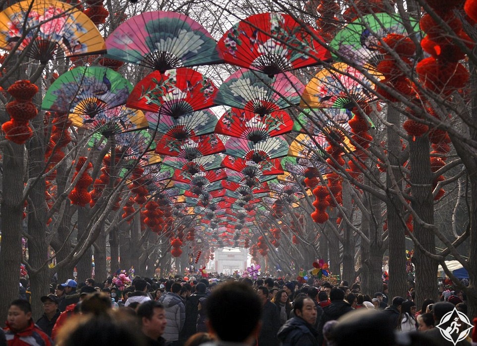 في صورة جميلة.. يهيم عشرات من الناس على وجوههم تحت الأشجار التي تتزين بالفوانيس للاحتفال بـالسنة الصينية الجديدةفي بكين.