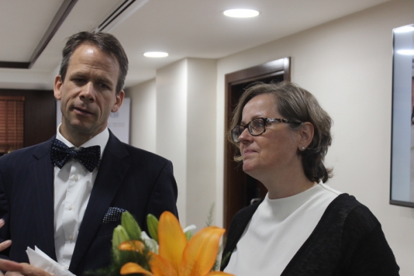 وكان رئيس مجلس الإدارة الدكتور فؤاد بجالي والمدير العام الدكتورة لانا بدر وعدد من موظفي الشركة في استقبال الوفد ،وبحضور شخصيات عامة ووزارء وشركاء للمجموعة العربية الأوروبية ، حيث أبدى رئيس مجلس الإدارة سعادته واستقباله الحار والترحيب بالضيوف الكرام على أمل تجدد اللقاء في المرات القادمة.