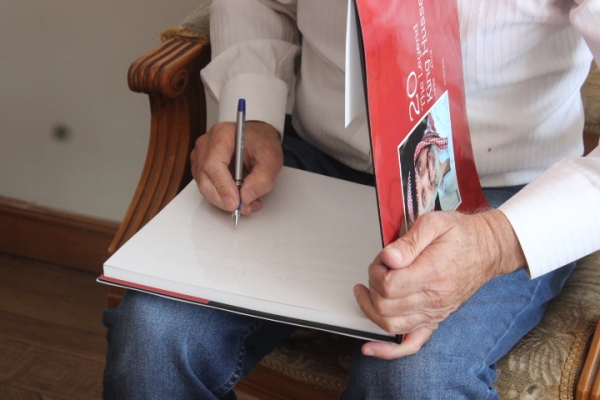 الكتاب في سنة ١٩٨٥ كان يتحدث عنه وعن عائلته وجيشه ورحلاته وقسم منه صور الأردن