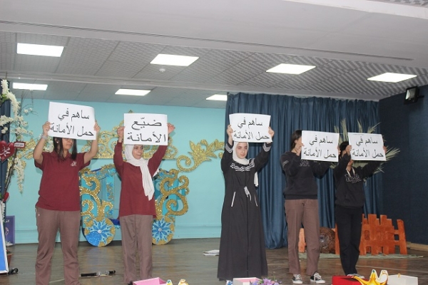 إضافة إلى أغنية دينية أداها قسم المرحلة الأساسية بشكل جماعي، وقد تخلل ذلك توزيع الأقسام للتمر والماء؛ وقد كانت جميع الفعاليات تهدف إلى ترسيخ القيم الدينية والإسلامية والأخلاقية الإيجابية.