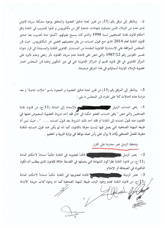 أما وأن التحضير لانتخابات مجلس نقابة الصحفيين المقبل بدأ مبكرا، وتواترت إعلانات الزملاء الراغبين بخوض غمار السباق المنتظرة في نيسان المقبل، وحيث أنني كنت أحد الذين نالوا شرف ثقتكم في الدورة الحالية للمجلس، ومع التطورات الأخيرة في ملف فصل 23 زميلا والقرارات الصادرة عن المحكمة الإدارية بهذا الخصوص أرجو أن تتسع صدوركم للملاحظات التالية: