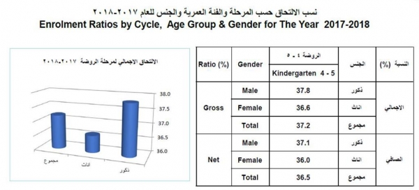 - بتاريخ 1 / 12 / 2019 صرح وزير التربية والتعليم الدكتور تيسير النعيمي بأن 84% من الأطفال ملتحقين برياض الأطفال.