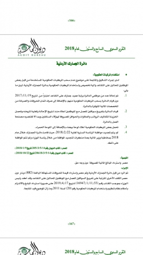 كشف تقرير ديوان المحاسبة لسنة 2018 لدى إجراءه تدقيق ومتابعة ملف دائرة الجمارك الأردنية عن بعض التجاوزات والمخالفات حول العديد من المواضيع والقضايا، ولدى متابعته موضوع عدم سحب المركبات الحكومية المستخدمة من قبل بعض الموظفين المحالين على التقاعد وآلية تخصيص واستخدام المركبات الحكومية تبين لدى ديوان المحاسبة ، أنه تم إحالة عدد من موظفي الدائرة برتبة عميد على التقاعد اعتبارا من تاريخ 19/11/2017 دون قيام الدائرة بسحب المركبات الحكومية منهم ، بالإضافة إلى صرف أثمان المحروقات والصيانة من المخصصات المالية المتوفرة بالدائرة، كما قامت الدائرة بتفريغ سواقين للعمل معهم منذ تاريخ الإحالة ولغاية تاريخه وتحمل الخزينة لتكاليف الرواتب والعلاوات والحوافز المصروفة لهؤلاء السواقين وبما لا تقتضيه مصلحة العمل بالدائرة،مطالبا بضرورة حصر واسترداد المبالغ المالية المصروفة بدون وجه حق إلا أنه تم الرد من قبل دائرة الجمارك وتم حصر واسترداد قيمة المحروقات المستهلكة البالغة 882 دينار دون حصر الكلف الأخرى المترتبة على تفريغ السواقين للعمل مع الموظفين المحالين على التقاعد، على الرغم من أن رئيس الوزراء أكد بموجب كتاب صادر على ضرورة استرداد المبلغ والالتزام بأحكام نظام تنظيم واستخدام المركبات الحكومية وما زال الموضوع قيد المتابعة.