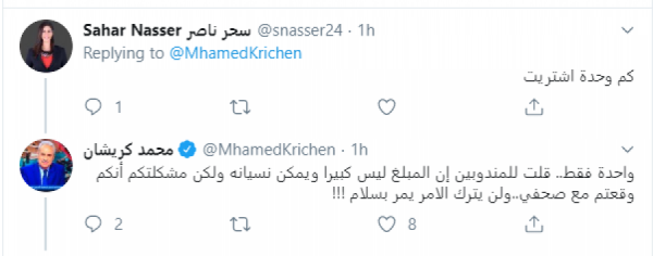 وأفاد كريشان أن "مقر الشركة في الأردن ولديها هنا من يقول إنه مجرد موزع مع أنه هو من يقبض ثمنها (١٥٠ ريالا).