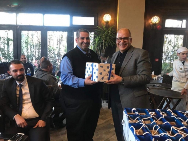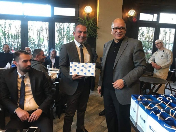 وقام رشيد الهباب المدير العام، بالترحيب بالموظفين،وتوزيع الهدايا على الحضور ،متمنيا للجميع عاماً جديداً مملوءاً بالخير والعطاء والازدهار.