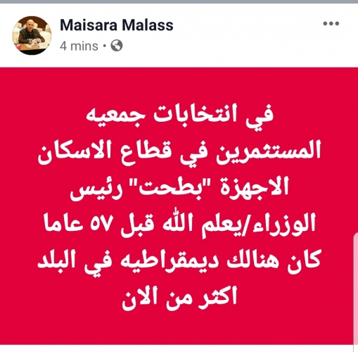كتب النقابي المهندس ميسرة ملص تعقيبا على أحداث انتخابات جمعية مستثمرين قطاع الإسكان عبر صفحته على مواقع التواصل الاجتماعي "الفيسبوك".