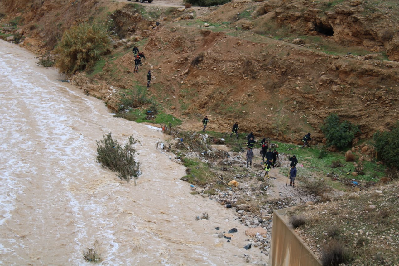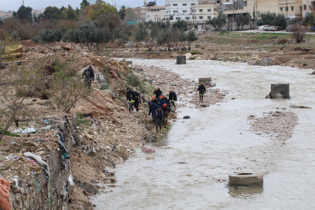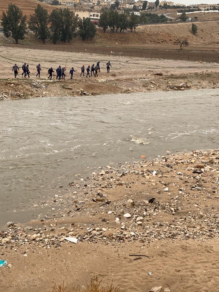 وأضاف إلى انه تم توزيع عشر مجموعات عمل تضم فرق غطس وفرق إنقاذ من مديريات دفاع مدني الزرقاء وجرش وشرق اربد ومديرية إنقاذ وإسناد الوسط والشمال بالإضافة إلى فريق البحث والإنقاذ الدولي تعمل على نطاق واسع يمتد من وادي القمر وجسر الجندول وجسر الزواهرة وجسر الجديد وجسر السخنة وطواحين العدوان وصولاً إلى سد الملك طلال .