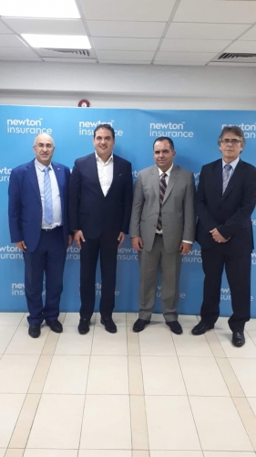 وشملت الزيارة شركة الأردن الدولية للتأمين(نيوتن) حيث كان في استقبال ممثلي الاتحاد السيد فارس قموة الرئيس التنفيذي للشركة والسيد محمد اسحاقات الذي تم تعيينه مديرا عاما للشركة مؤخرا حيث تقدم ممثلوا الاتحاد بالتهنئة للسيد محمد بمنصبه الجديد وتمنوا له التوفيق والنجاح في منصبه الجديد واستعداد الاتحاد للتعاون مع الشركة لتحقيق الرؤى والطموحات لتحقيق مزيد من النجاحات والانجازات لعام ٢٠٢٠ ودور الاتحاد في تدريب كوادر الشركات من خلال خطة تدريبية محكمة تم تصميمها بالتعاون مع الشركات لتلبية الاحتياجات التدريبية للشركات.