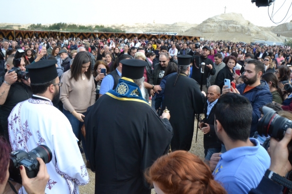 وحضر الإحتفال عدد من الوزراء والأعيان والنواب والسفراء وجمع من المسؤولين والرسميين وجموع غفيرة من الحجاج الذين زاد على ثمانية آلاف حاج من الأرثوذكس ومؤمنين من عدة كنائس ومن دول العالم ودبلوماسيين على أرض الأردن الحبيب وحيث ترأس الصلاة صاحب السيادة المطران خريستوفورس بمشاركة صاحب السيادة المتروبوليت فينذكتوس رئيس دير يوحنا المعمدان ولفيف من الكهنة الاجلاء خدمة تقديس الماء وتكريز المؤمنين وفي نهاية الحفل القئ سيادة المطران خريستوفورس كلمته عن اهمية عيد الظهور الإلهي الغطاس وتحدث عن معانيه الروحية التي تنبع من هذا المكان المبارك حيث أشار سيادته الى الإهتمام الكبير الذي يمنحه جلالة الملك عبدالله الثاني بن الحسين وصاحب السمو الملكي الأمير غازي بن محمد لموقع المغطس واثنئ على الجهود المبذولة من قبل وزارة السياحة والآثار وهيئة موقع المغطس وأشار الى أصالة العيش المشترك الموجود في الأردن الحبيب كما شكر أيضاً الأجهزة الأمنية لحرصها على أبناءها ووجودها دائماً في الاحتفالات الدينية وكل من شارك وساهم في انجاح الحفل من شبيبات وجوقات وكشافة ماركا بقيادة المهندس موسئ فينو حيث عكسو صورة مشرفة ومرموقة حول الموقع المقدس وبعد ذلك اتجه موكب الأساقفة والكهنة الى ضفة النهر الشرقية حيث صلى سيادته خدمة تقديس الماء وتغطيس الصليب مباركاً الحاضرين بماء النهر المقدس، مطلقاً الحمام الأبيض رمزاً للروح القدس الذي ظهر يوم إعتماد السيد المسيح في نهر الأردن وفي ختام كلمته نقل سيادته للحاضرين بركة وأدعية صاحب الغبطة البطريرك كيريوس كيريوس ثيوفيلوس الثالث الذي يعايد الجميع بهذا اليوم المبارك ويتمنى للجميع عام مليئ بالمسرات والخيرات، وفي نهاية الصلاه قام المؤمنين بالحصول على الماء المقدس من نهر الأردن على أصوات موسيقى الوطن الممزوجة بصوت الإيمان من الموقع المقدس .