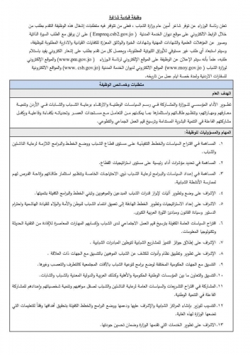 أعلنت الحكومة عن توفر شاغر بوظيفة قيادية (أمين عام وزارة الشباب).