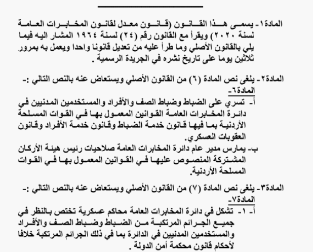 اخبار البلد - صدرت الارادة الملكية السامية ، بالموافقة على قانون معدل لقانون المخابرات العامة.