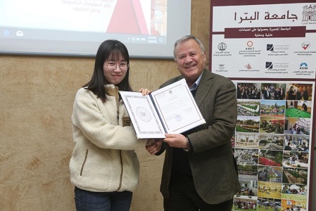 رعا رئيس جامعة البترا، الدكتور مروان المولا، تخريج طلبة جامعة "دانكوك" من كوريا الجنوبية، ضمن برنامج اللغة العربية للناطقين بغيرها الذي يطرحه مركز اللغات، بحضور نائب رئيس الجامعة الدكتور تيسير أبو عرجة وعميد كلية الآداب والعلوم، الدكتور رامي عبد الرحيم، ومديرة مركز اللغات الدكتورة علا الدباغ ومساعدتها الدكتورة هبه عمرو، وعدد من أعضاء الهيئة التدريسية، والطلبة المشاركين في البرنامج.
