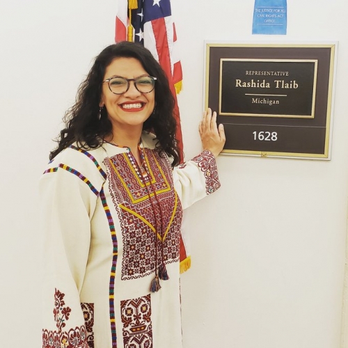 وقالت طليب : أنضم لاخواتي اللواتي اخترن ارتداء اللون الأبيض في الكونغرس، عبر ارتداء الثوب الفلسطيني الأبيض كوسيلة للاحتجاج على هذا الرئيس، الذي تعرض للإقالة