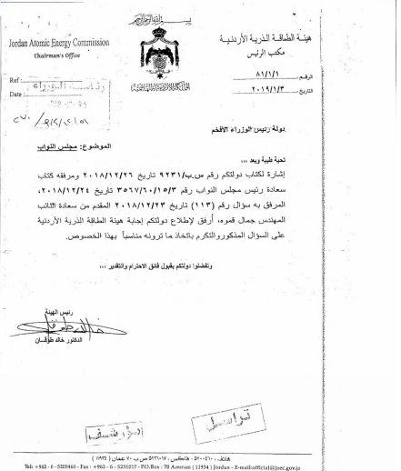 وقال النائب قموه ان الاجابة التي تلقاها من الحكومة - هيئة الطاقة الذرية ، يسمعها منذ عشر سنوات ولم يشهد تطوراً على الموضوع .