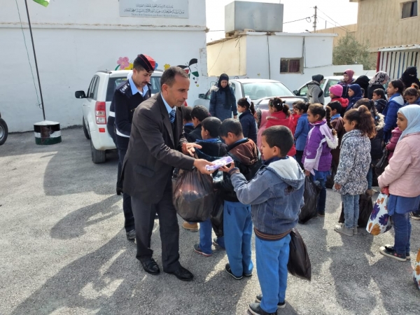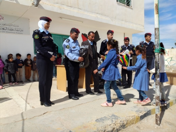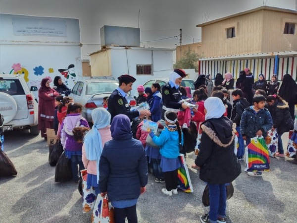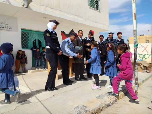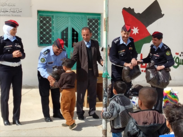 قام فرع العلاقات العامة في ادارة السير وبرعاية من المجموعة العربية الأردنية للتأمين يوم الاثنين الموافق 24-2-2020م بتوزيع الكسوة الشتوية لعدد من طلاب مدرستي حليمة السعدية الأساسية المختلطة في الحسا بمحافظة الطفيلة، ومدرسة طلحة ابن عبد الله الأساسية المختلطة في منطقة الحسينية بمحافظة معان.