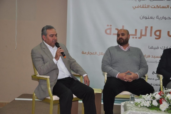 السلط - رعى وزير الشباب الدكتور فارس بريزات الندوة الحوارية الشهرية التي عقدت في مركز موسى الساكت الثقافي في السلط تحت عنوان "الشباب والريادة" بمشاركة عدد من الشباب الرياديين ادارها المهندس موسى الساكت وبحضور من مختلف المحافظات .