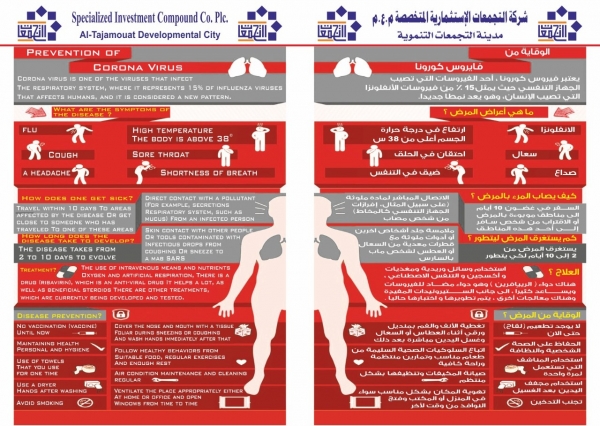 ودعت الشركة كافة الشركات الاردنية الى ضرورة اتباع طرق الوقاية والسلامة العامة من خلال القيام بعمليات التعقيم المستمر للمباني والمكاتب والمساهمة بشكل فعال في توعية المواطنين لحمايتهم والحفاظ عليهم من الاصابة بالفيروس .