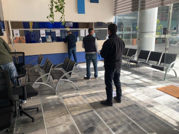 حرصا من إدارة البنك الأردني الكويتي على صحة وسلامة جميع العاملين والمراجعين لفروعه العاملة في المملكة. فقد حرصت على تطبيق أعلى درجات السلامة العامة من حيث توفير المعقمات والقفازات والكمامات لجميع موظفي الفروع والعملاء. ومراعاة التباعد بين العملاء المتواجدين بالفروع.