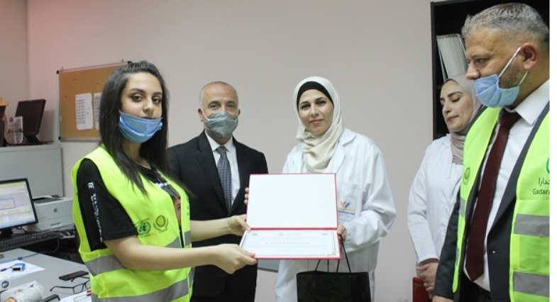 أخبار البلد - أعلنت مبادرة جدارا للعمل الانساني التابعة لمنظمة أمسام IIMSAMعضو المجلس الاقتصادي والاجتماعي في الأمم المتحدة عن تكريمها عدد من الأطباء والممرضين والفنيين والعاملين في مستشفى الملك المؤسس عبدالله الجامعي في محافظة اربد ممن كانوا في خط الدفاع الأول لمواجهة فايروس كورونا .