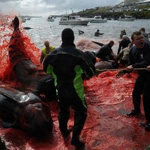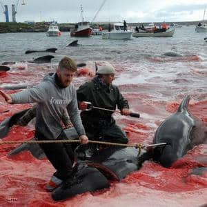 واصطاد الصيادون حوالي 250 حوتا طيارا و35 دولفينا، قرب قرية تقع أقصى جنوب الأرخبيل، وفق ما ذكرت شبكة "يورو نيوز" الإخبارية.