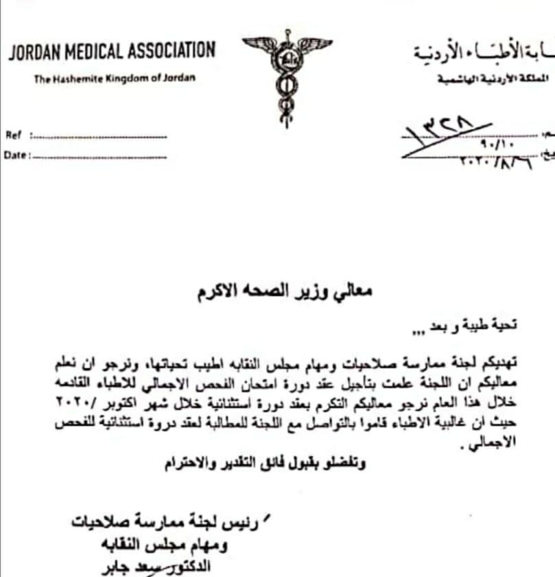 جابر رجا من نفسه في ذات الكتاب التكرم بعقد دورة استثنائية خلال شهر تشرين الأول المقبل، حيث أن غالبية الأطباء