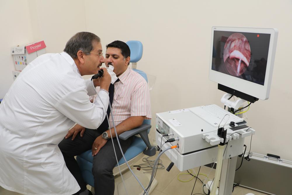 وأوضح أن هذه العيادات تتوفر فيها جميع الأجهزة الحديثة سواء المتعلقة بالنطق أوبالسمع أبرزها جهاز التنظير الوظيفي للحنجرة والأوتار الصوتية وذلك عن طريق الفم أو الأنف حيث يتمكن الطالب من مشاهدةميكانيكية حركة الأوتار الصوتية بكل وضوح وكذلك ملاحظة ما إن كان هنالك أمراض تؤثر على الصوت البشري.