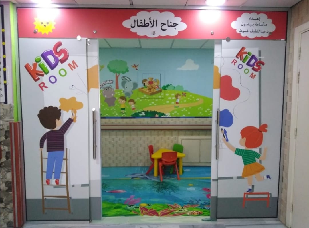 بهدف توفير الراحة والطمأنينة للأطفال المرضى تم تحديث القسم وإعادة تصميمه وتزيينه بالرسومات الخاصة بالأطفال.