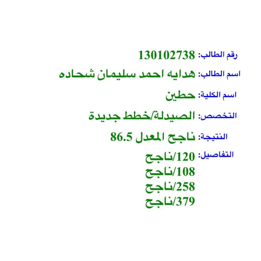 يتقدم الحاج أحمد سليمان شحادة "أبو شادي" وعائلته بأسمى آيات التهنئة و التبريك لابنتهم هدايه "أم طلال" وعائلتها بمناسبة نجاحها في امتحان الشامل بتفوق بمعدل 86.5 و حصولها على درجة الدبلوم في الصيدلة من كلية حطين، بعد انقطاع أكثر من ١٢ سنوات عن الدراسة، متمنين لها دوام التقدم والنجاح.