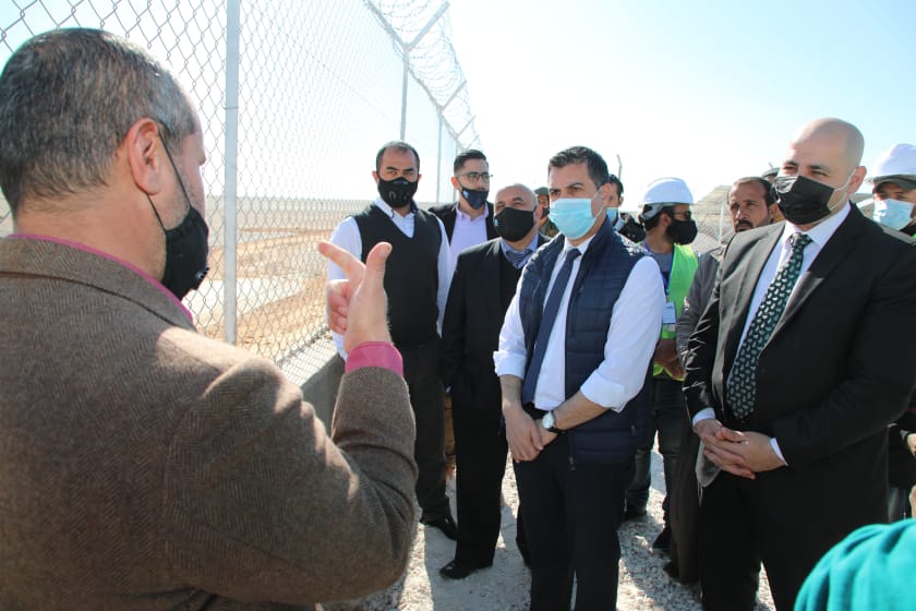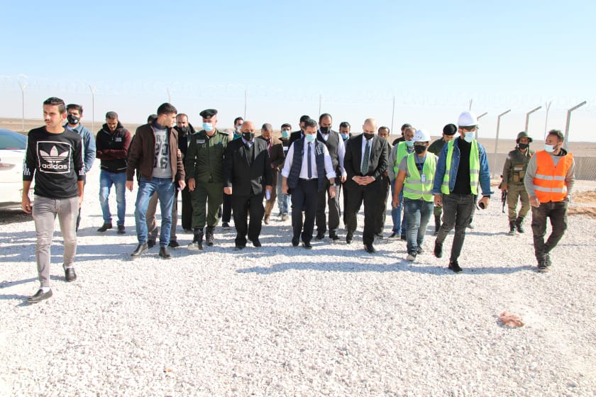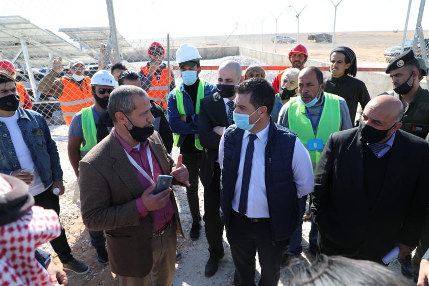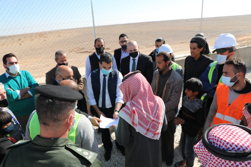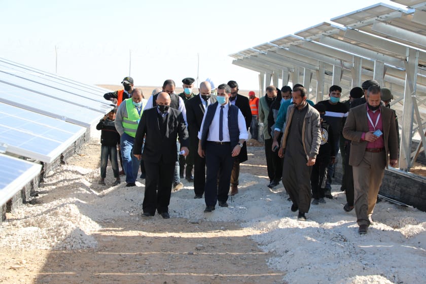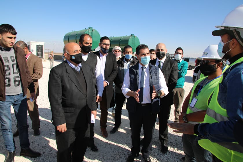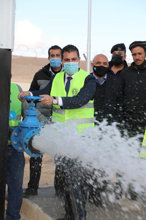 كما تفقد الوزير الدكتور سعيدان والوفد المرافق سير العمل في موقع مشروع تجهيز وتشغيل بئر الجفر الاستكشافي الذي تنفذه الوزارة / سلطة المياه ضمن خطط الحد من الاعتداءات على مشروع مياه الديسي لتوفير (20) متر مكعب/ ساعة من المياه في المرحلة الاولى حيث سيعمل على الطاقة الشمسية ويمكن رفع طاقته الانتاجية لتلبية الاحتياجات المتزايدة مستقبلا حيث تم تمويل البئر من المنظمة الدولية لحماية الطفولة ( اليونسيف) بقيمة (155) الف دينار وتوفير مصادر مياه قريبة من التجمعات السكانية ويتضمن تركيب تجهيزات ميكانيكية ومدنية والواح كهروضوئية لانتاج الطاقة الكهربائية وتركيب خزانات عدد (2) بسعة (50) متر مكعب لكل خزان وعمل مشارب للمواشي وحماية وغرف تشغيل وحراسة حيث اكد على الاسراع بانجاز الاعمال التي من المتوقع اتمامها مطلع الشهر الاول من العام القادم لتعزيز التزويد المائي لمنطقة الجفر بكميات مياه اضافية مؤكدا ان هذه البئر ستخفف الاعباء على الاخوة مربي المواشي.