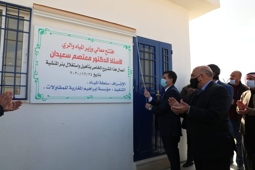 وفي منطقة اذرح لواء البتراء دشن الوزير بحضور المحافظ ورئيس بلدية الاشعري وعدد من الاهالي وممثلي المجتمع المحلي مشروع تأهيل وتشغيل بئر المنشية رقم 3 بطاقة (50) متر مكعب / الساعة وتنفيذ خط ناقل بطول (1.8) كم الذي سيعمل على حل ازمة المياه التي عانتها منطقة المنشية وسكانها البالغ عددهم (6) الاف نسمة وتخفيف كلف التشغيل والصيانة للمواطنين حيث بلغت كلفة استغلال بئر المنشية نحو(122) الف دينار مؤكدا ان انجاز وتشغيل البئر الجديدة سينعكس ايجابيا على تأمين كميات مياه في مناطق لواء البتراء ووادي موسى والتي تشهد حركة سياحية نشطة يوميا مما يشكل ضغطا على مصادر المياه في البتراء خاصة خلال اشهر الصيف.