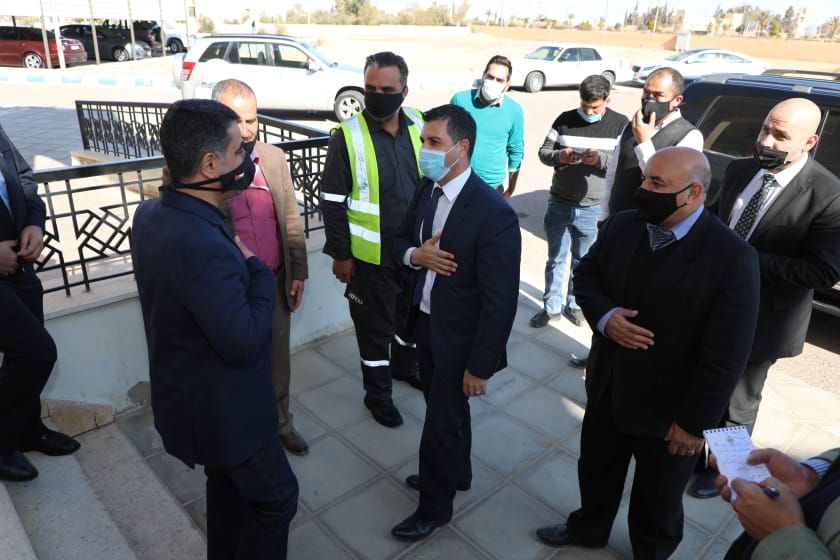 كما تفقد وزير المياه والري في لواء الشوبك موقع انشاء خزان مياه محطة ضخ حمزة بسعة (500) متر مكعب وعملية التشغيل الاولية والتي حسنت من التزويد المائي لمناطق الشوبك وتعزيز المتطقة بكميات مياه اضافية للاستخدام المنزلي وجال على عدد من مرافق المحطة وعملية استكمال الاعمال الخارجية للمحطة وتجهيزها وزار الوزير موقع مشروع انشاء خزان مياه محطة ضخ العبدلية الذي بلغت نسبة الانجاز فيه نحو (75%) موعزا لأمين عام سلطة المياه بضرورة استكمال الاعمال ليكون جاهزا قبل بدء موسم الصيف لما لهذا الخزان من اثر في تأمين وصول كميات مياه للمواطنين وكذلك اعطاء أمر المباشرة للبدء بحفر بئر جديدة في منطقة العبدلية.